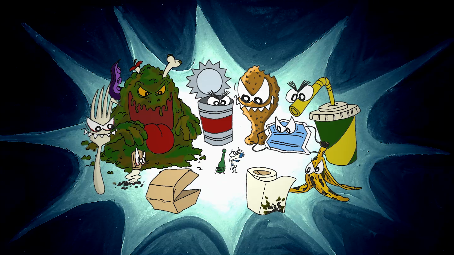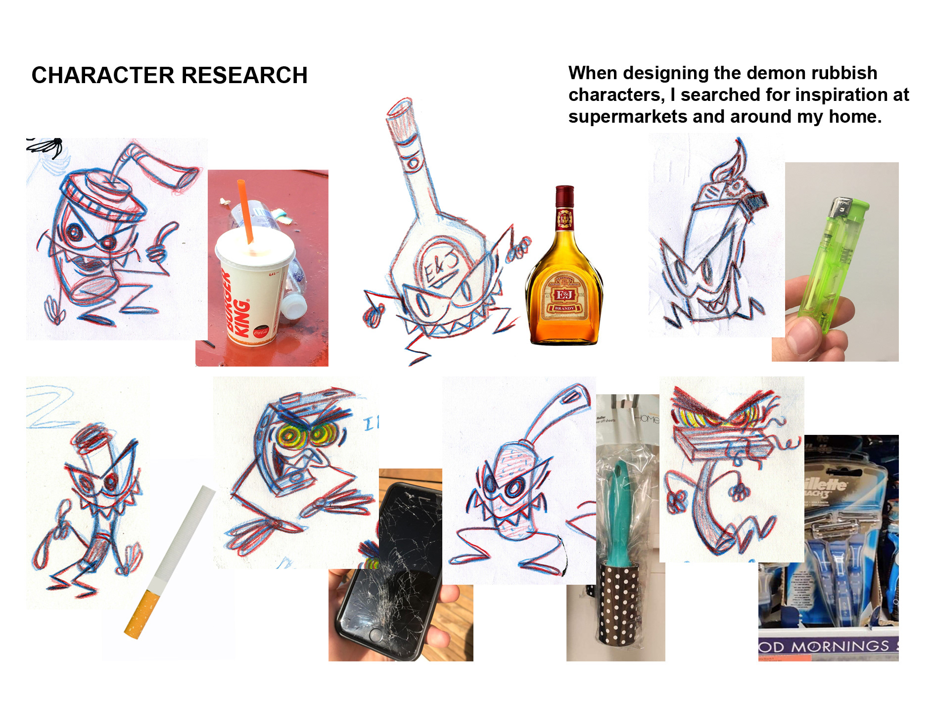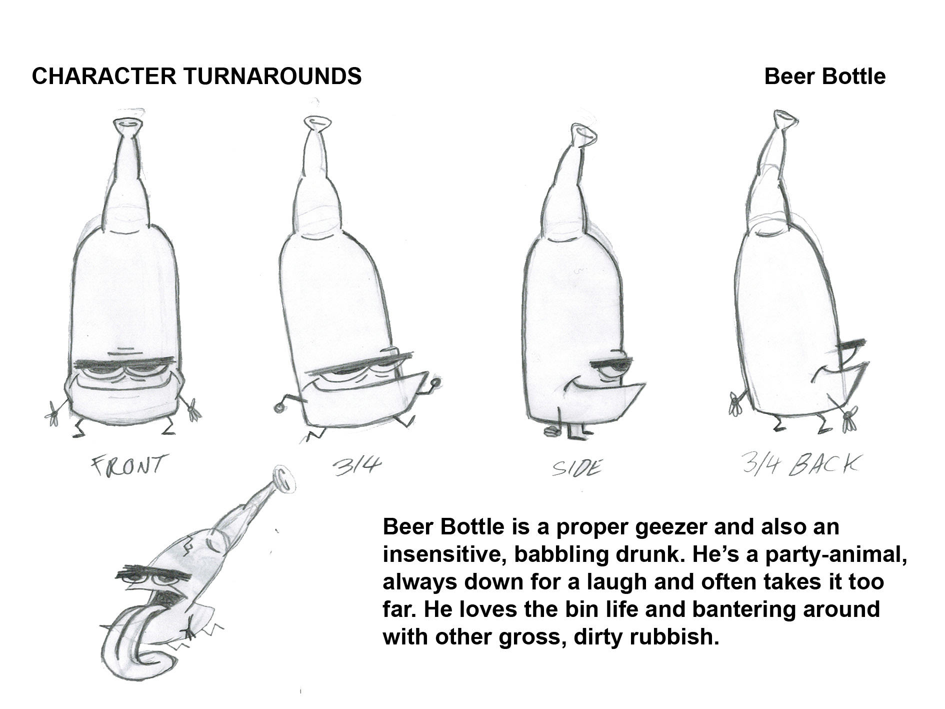 For my short film WASTEMEN, I designed the two main characters of Spray Bottle and Beer, and a slew of other rubbish characters to populate the bin.