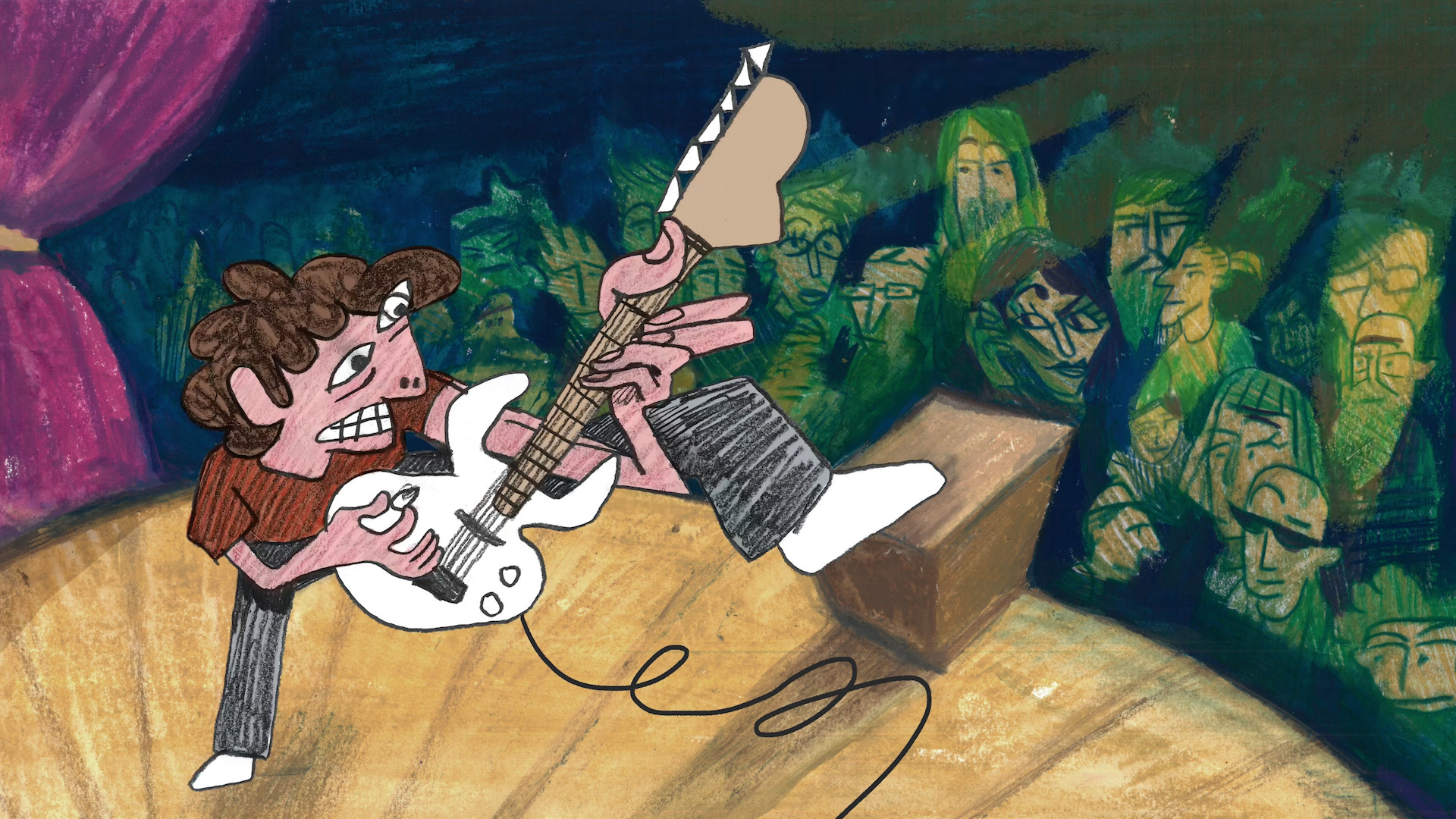 Mixed media animation that follows funk band Grog Machine as they walk out into the spotlight. They may have only just switched on their amps and kicked on their guitar pedals but something is definitely wrong.