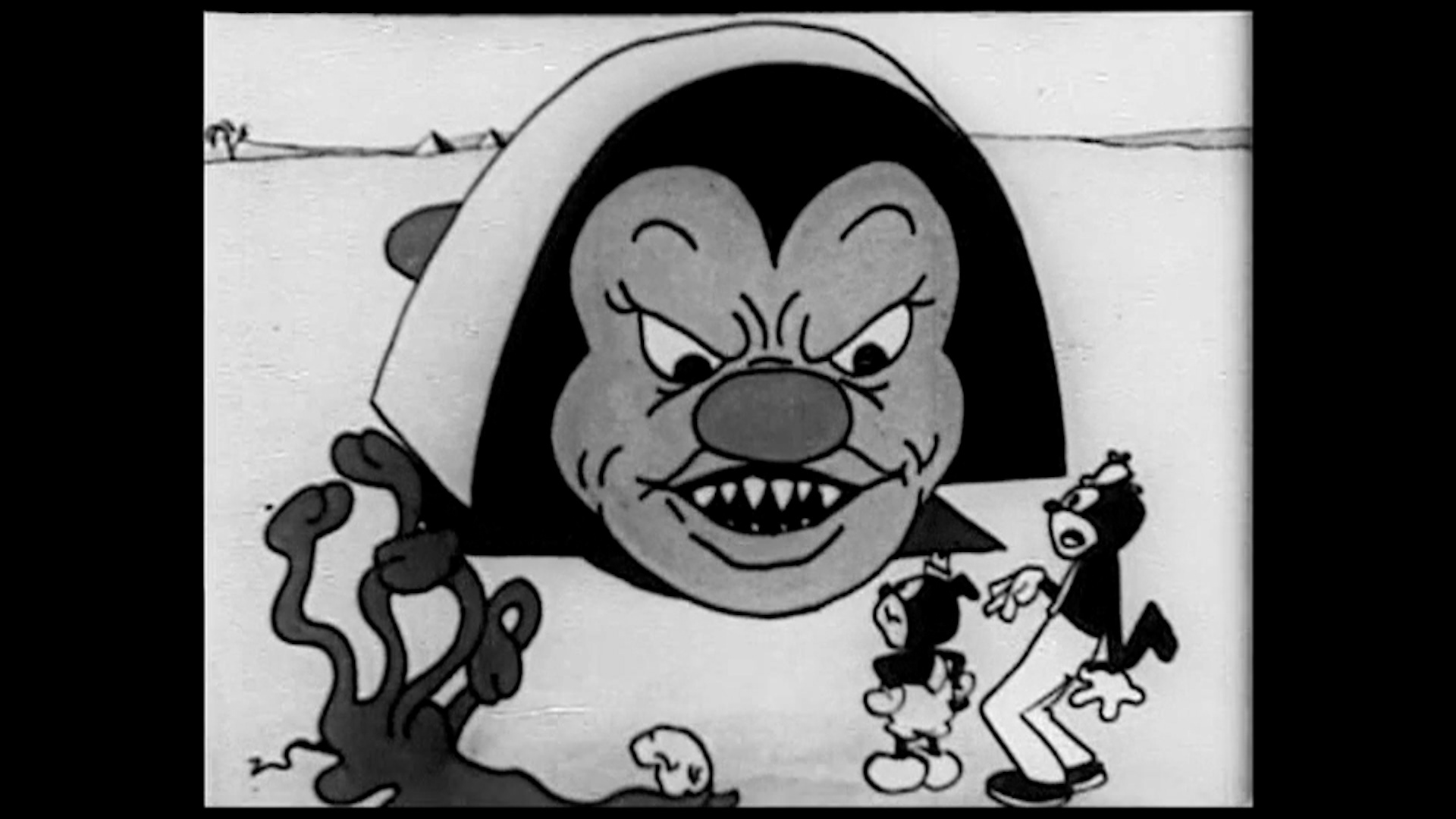 Waffles the Cat and Don Dog find themselves at the mercy of animate skeletons inside an Egyptian tomb. 1930,Van Beuren Studios (Curated by Steven Hartley)