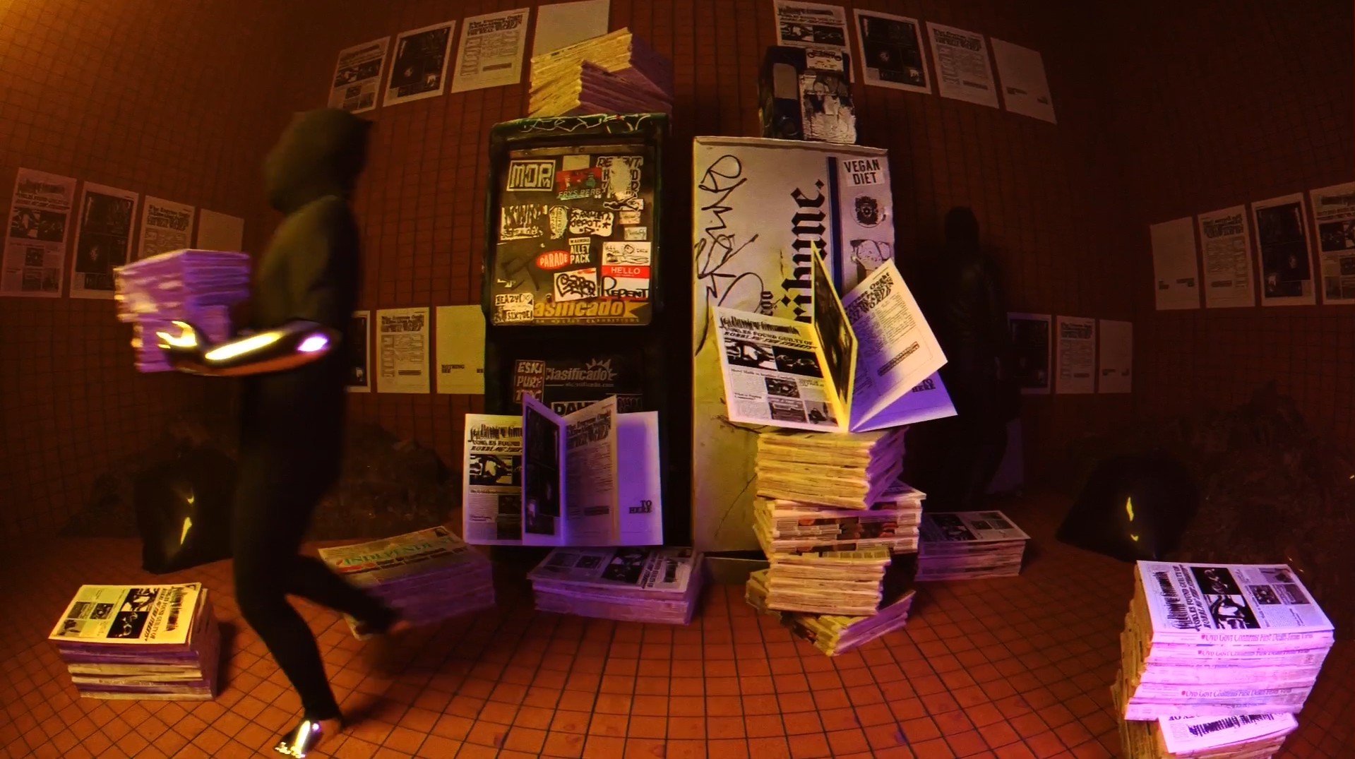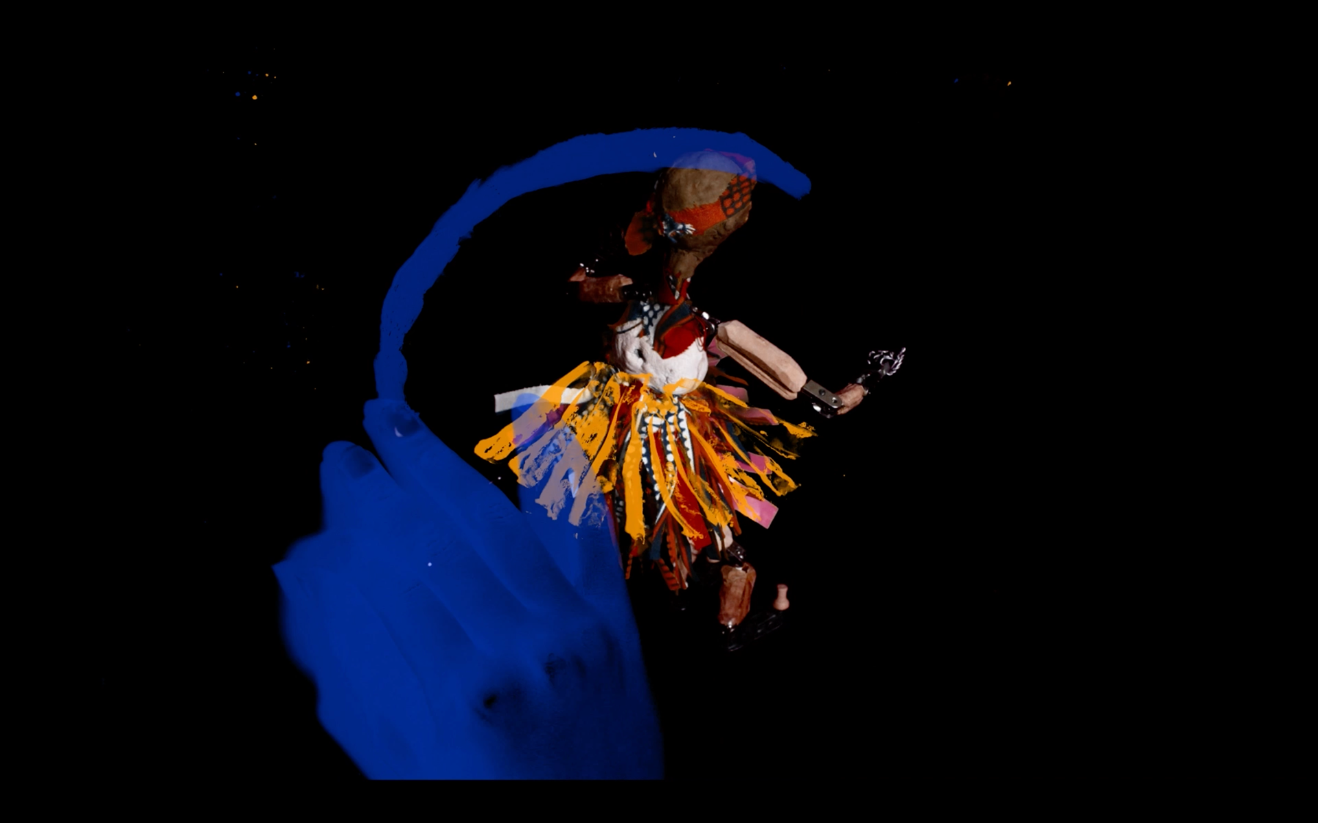 Cosmic Bodies aims to envision a queer utopia, incorporating imagery inspired by South Asian mythology and post-human bodies in contemporary science fiction. The film is a combination of digital frame animation and Risograph printed backgrounds, depicting a queer post-human world and the creatures that inhabit it.